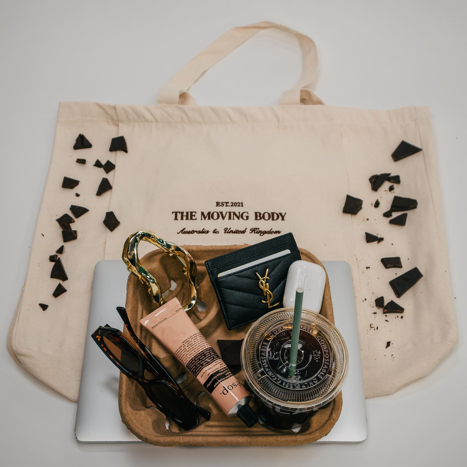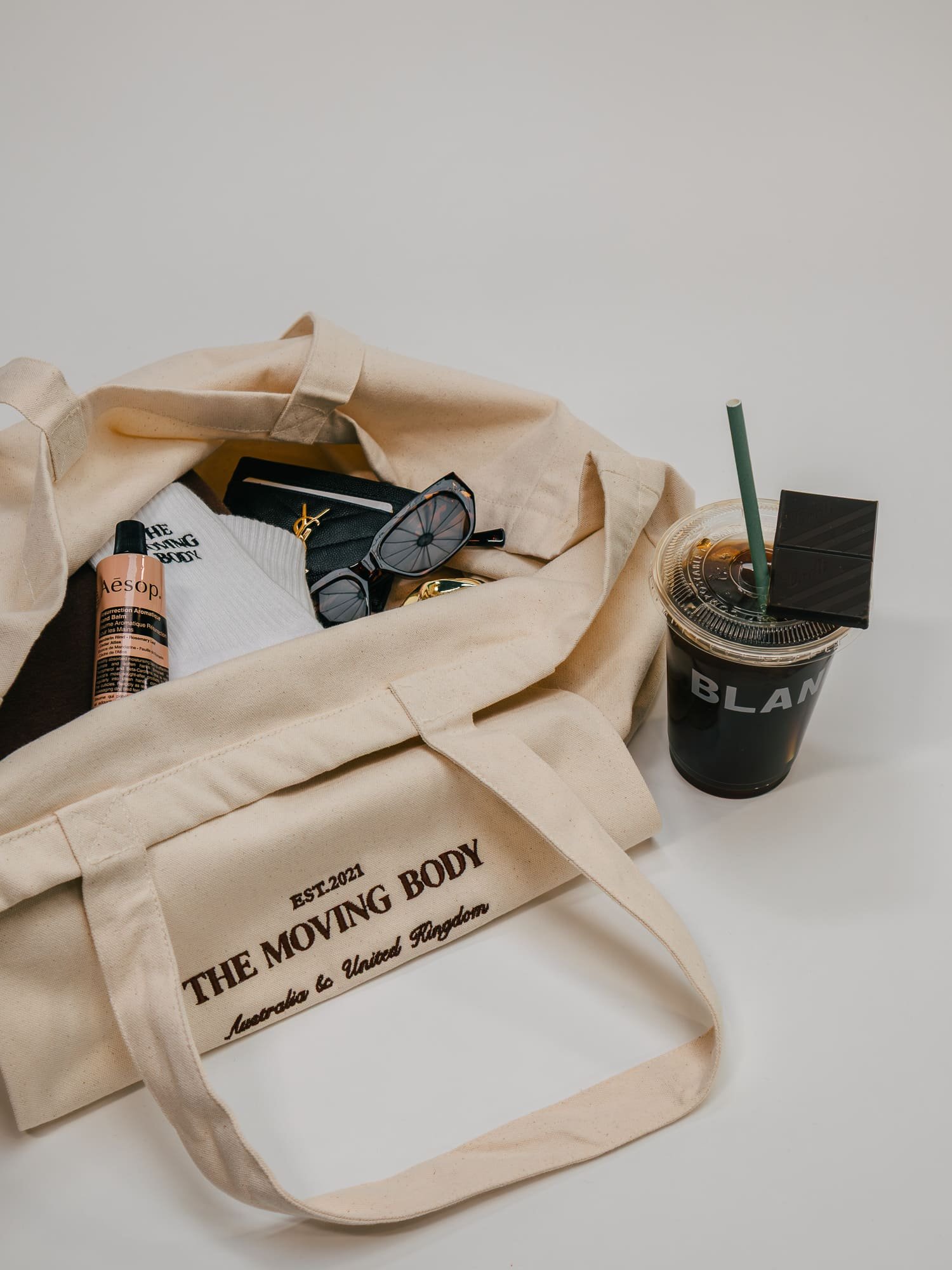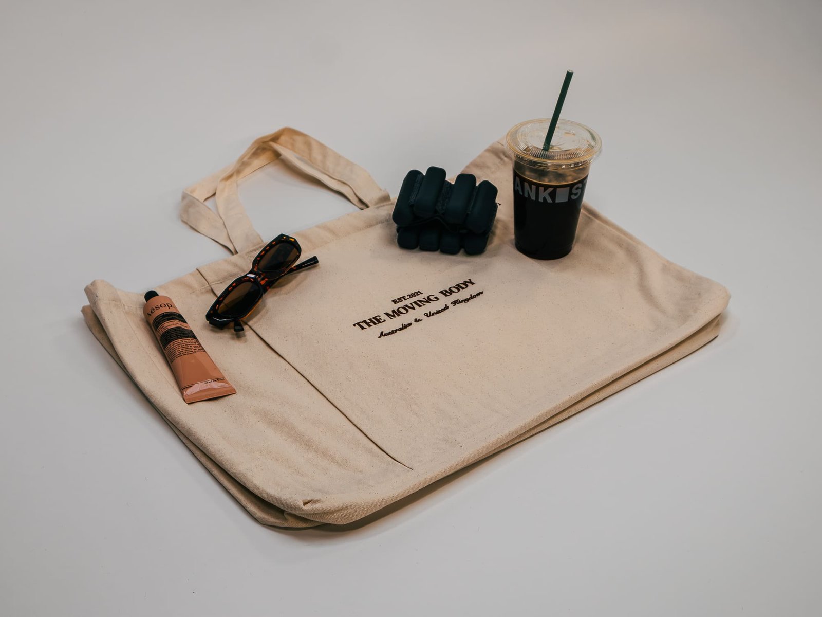 Canvas tote with mat bag pocket. 2 choices of colour way stitching: Mocha Brown and Navy (select one)